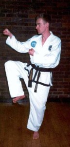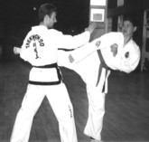 I also used to train with a Shotokan black belt and was always very aware that a single, but very important element was missing from Taekwon-do training, that of pattern application. Not the knowledge of the movement, but the actual practice of it. Something that has now been thankfully rectified when I train and teach today. Patterns should be practised solo, broken down as fundamental exercises and practised in pairs or groups that allow the applications of each move to be felt and used against a real opponent. How many people have reached black belt in Taekwon-do or win medals at pattern competitions but do not know the nerve-strike contained in pattern Toi-Gye, the release techniques from Choong-Gun or Po-Eun or even the pressure points in Chon-Ji (Yes they are there), plus the many others. Since the time I left my old association, which was adamant about perfection in patterns, I have sought more to understand the applications and added this to the knowledge taught already by my instructor Mr Bryan. This in turn has lead me to find out more about the 1st generation instructors that were originally under General Choi, but have now left. Many of whom were originally responsible for the technical direction of ITF style Taekwon-do. The way they teach (and were taught) is quite far removed from what many instructors teach today. Luckily, wether simply by chance or realization of my instructor, my own training was not to far from how Taekwon-do was originally perceived. Mr Bryans (and Mr Peppers) extra-curricular training (if you like) has afforded me something very valuable. That of looking deeper into everything, staying open minded and (possibly to their annoyance) questioning everything I didn't understand and even that which I did. I, like many before me, went through the learning stages of patterns practice. First you learn them as accurately as possible but with no regards to technical application. By as accurately as possible I mean that your knife hand guarding block is correctly positioned etc. but not necessarily effective in its own right. Then you learn them simply because they are part of the syllabus and are content to stick with 'This is a block, this is a strike' and again making them as accurate as possible. Then you either carry on like this, or you dismiss them as having no relevance to self defence (as many students do) and simply being tradition. The former people often giving up Taekwon-do or any art which involves similar practices (such as kata) or concentrating solely on sport style sparring, assuming that this is more akin to self defence than patterns or anything else contained within Taekwon-do. Even with the knowledge of the applications it is of no use to simply tell the student the application, rather than let them practice it, as this will obviously be of no use should the student need to use it. Many have forgot the old adages of "One strike is sufficient for victory" or "One strike, one kill" and lose this important point in their quest for student trophies, where many people see a good Taekwondoist as the one who brings home the gold. But if we work with the 'One Strike, One Kill" philosophy then why do many students consider a patterns with 24, 28, or 45 movements in it to be a way of fighting, then dismiss it as impractical. Of course if you looked at a pattern in this way then it does seem impractical with regards to self defence, after all who fights using 20 walking stances ! But patterns aren't meant to be viewed this way. A simple example of what I mean can be seen in the first two movements of pattern Dan-Gun. If attacked with a straight punch and you block with a knifehand, the strike would also be a straight punch with the added momentum of the body moving forward, thus increasing the punches power considerably, the fact the it is a high section punch means that it possibly travels over the attackers arms and into its intended target. This of course is the simplest application of a knife-hand block and high section punch, there are others. I was taught that a block (or most of them) were actually designed to damage your opponent, so the block does the damage and the strike follows in for the kill (so to speak). This makes patterns a collection of block and strike applications or blocks and counter-attacks. Obviously learning 500 variations of these is very hard to remember, so a pattern becomes a collection of these moves and all the patterns makes a library of self defence that's easier to remember. With the number of different applications for each movement, the number of defences increases considerably, but remains in an easy to remember format (provided you practice regularly and correctly). Like I said above, the sport side of Taekwon-do has its place (both in club sparring and competition). If your first strike doesn't come off as planned then the ability to keep on flowing is a major advantage, as are that sense of distancing and timing, plus the butterflies that competition produces in juniors and all that goes with it. That is why I have always seen competition as simply another part of training, but not a means to an end. I myself competed for many years, with a good success rate, so I know the benefits of competing. Apply the pattern applications as they should be taught and you have a formidable arsenal of strikes, kicks, locks, breaks and release techniques, even throws. Add to that an open minded instructor and the world is you oyster. In the outside world, add this knowledge and training to the works by Geoff Thompson and such, with regards to adrenaline responses etc. and your chances of surviving an encounter are greatly increased. Some might say this is not Taekwon-do, but if Taekwon-do is a scientifically formulated art, then what is wrong with taking on board these break throughs. To me, Mr Thompsons 'fence' is one of the most important techniques devised within the last 20 years (may be longer). If it really bothers anyone