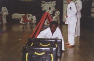 Amittai looks a little worse for wear travelling through the Academies assault course |