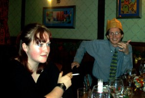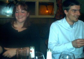Lyndsey has a sneaky fag as Martin shows his gang signs! |