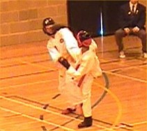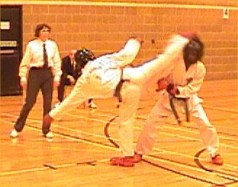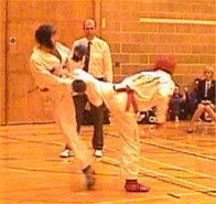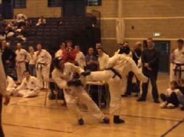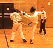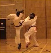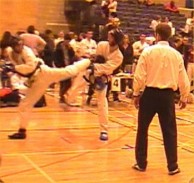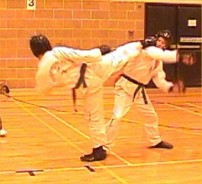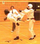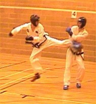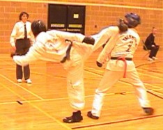 fast hook kick Parvez Sultan checks his opponent, as does Justin Goh! |