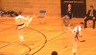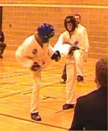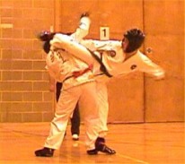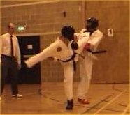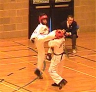 Justin Goh with a nice hooking kick |