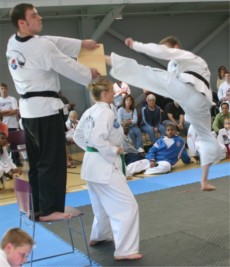 4 days with Master White, 8th Degree of Molum Combat Arts. The first question asked is what did I have to do for the grading, as most, like myself are indoctrinated into the test date scenario that is usual with martial arts, where you do your time, learn your stuff, pay your fee and if you have a good day, pass and are promoted. The test usually lasts between 2 to 5 hours and this is the basic way modern gradings work and this is fine and usual. However, as I did not go to the US to be graded, didn't expect to be graded nor did I request it, the real answer to the question of what I had to do for my 4th degree promotion was simply: be myself! However, this is the fact that makes it a unique promotion. Before anyone puts 2 and 2 togethor and come up with 8, here is what I did physically or tangiably to earn the promotion: Tested over 4 days straight and I mean 24/7 (or in this case 24/4) During which time I performed my grade patterns and many applications and techniques from other ITF patterns. Taught a seminar to both Taekwon-do (with ranks from white belt to 4th degree) and Jeet Kune Do students in front of 4th to 8th degrees with them participating as well - after an 8 hour flight to DC Sparred 8 rounds of continuous stand up sparring one after the next Fought 6 rounds of ground fighting one after the other Broke with a high section twisting kick (behind me at shoulder height) Performed a jumping reverse turning kick to a board on top of my own girlfriends head And a reverse knife hand strike through three boards - all one after the other with no pauses. I had in-depth discussions on the applications of Taekwon-do techniques, its history and traditions to the small hours of each morning Presented a thesis that was 170 A4 size pages long! All the while not actually knowing that I was being tested, which in the end was actually the biggest test of all, as it was a test of my character as well as knowledge and physical attributes. On presentation of the rank award, Mr Melton, 4th degree and Chief Instructor of Virginia Martial Arts School and our host for the week, as well as technical advisor on any Taekwon-do matters unknown to Master White, read out a letter that accompanied the certificate of rank promotion, which said the following: Dear Mr. Anslow, It was very nice to see you and Gill at Mr. Melton's this past weekend. After reviewing your teaching methods, watching your competition standards, and visually observing your conduct for the past 4 days. I think that you should be promoted. I know that you are well past the time to get this, and I know that you want to test. Tests come in various types, and this one is based on experience. I have seen many martial artists in my time and you are above the norm for your rank and experience. Therefore, by the authority vested in me as the Director of the Molum Combat Arts Association I hereby promote you to 4th Degree Black Belt in the Molum Combat Arts Association, with all rights and privileges pertaining thereto. This is not an Honorary Degree as I know how you feel towards such promotions. This is not a gift, but a true representation of your skills. You may decline it, but that will not change my opinion of what I saw this past week. You owe me nothing but your friendship. You have honor, strength and integrity. This above all else will stand out in my mind. Congratulations from the Old Man. Tim White Training Director PSI/MLCA 8th Dan MLKFS 7th Dan Keisatsu Jujitsu |