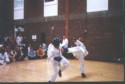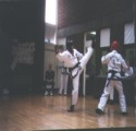 known as `Taekwon-do Explosion 2001`. Over eighty competitors whose instructors were invited specially travelled down to compete in the tournament. Interspersed throughout the day were special black belt challenge matches in continuous sparring format, over two rounds. This was to set the tone for the coloured belts & also give them some great displays throughout the day. Each black belt that competed in a challenge match entered the area to their own theme tune to add to the razzmatazz of the day. To kick the day off (excuse the pun) Instructor Nick Sheehan IV (Watford TKD) fought Stuart Anslow III, the instructor of the Academy. As each entered the area they received a big applause from the eager crowd. Two rounds later, Stuarts hand was raised as the winner in what was a great starter for the event. This led onto the first coloured belt division, the Junior White to Green Belt patterns (aged 11 years & under). Some fine performances shone through in what was a large division. The first gold medal (they were trophies actually) of the day went to Rayners Lane student Dev Patel following closely by to take the silver was Emma Matier (Woolwich TKD), the bronze being taken by Kevin Bell (also of Woolwich TKD). Next was the Junior White to Green Belt Patterns (12 to 14 year olds). After a superb performance Alex Lemmisuier (Bracknell TKD) took the gold, with club mate Natalie Langley claiming the silver. Jason Grizzle (Rayners Lane TKD) took the bronze. The next Black Belt Challenge match of the day took place, this time between 3 times GTI Champion Kam `the man` Bains entering the arena to `Who Let the Kam Out` !!! & British Gold & Bronze Medallist Derrick `the attitude` Clarke who entered the arena to `Unleash the Dragon`. After two rounds of good continuous action, Derrick was declared the winner. The next patterns division taking place was the Blue & Red Belt Juniors. A fine performance put Arran Gregory (Bracknell TKD) into first place, with the silver taken by Toni Bennett (Rayners Lane TKD). The bronze position was drawn between Toni`s sister Zoe Bennett (Rayners Lane TKD) & Josh Harvey Atkinson (Edmonton TKD), so they were both awarded medals). The senior patterns were up next. Because of the large number of entries they were split into two divisions. First up were the White Belts to Yellow Belt/Green Tag. This was won by Mark Fenton (Dulwich TKD). Silver was claimed by Lyndsey Reynolds (Rayners Lane TKD), with the bronze being taken by Jason Wylde (Maidstone TKD). The third Black Belt Challenge match got under way, a heavyweight battle between British Bronze Medallist Delroy Coleman & Double British Gold Medallist Zak Espi. These 90 kilo plus heavyweights sprung around the ring like the welterweights showing some fine Ariel techniques, one time knock referee Dave Martin right off his feet. After two rounds Zak was declared the winner. The second division of the senior patterns were up. This was the Green Belts & Blue Tags. The gold was taken by Watfords Tara Aldwin, silver was claimed by Parvez Sultan (Rayners Lane) & the bronze by Mark Simpson (Bracknell TKD). Following this the Senior Blue & red Belt patterns took place. After some good performances Esmond Francis (Edmonton TKD) took the gold, with club mate & girl friend Clarye Bennett taking the silver. The bronze was claimed by Michael Roche of London Panthers TKD. The fourth Black belt Challenge Match took place. This time between British lightweight gold medallist Grant Codrington & English Gold medallist, light heavyweight, Michael O`Brien. The bout was intense, with Michael showing his superb front hooking & reverse turning kicks & grant flying about with spiral kicks, after two hard rounds the eventual outcome was declared a draw. It was time to get the coloured belt sparring under way. The biggest division of the day was up first, the 8 to 11 year olds, White to Green belts. After many furious fights, the final was set to take place between two Rayners Lane students who had fought their way through. Lloyd Lewis faced Dev Patel in what was an enthralling final. The gold eventually went to Dev, with Lloyd having to settle for silver, the bronze medal being won by Emma Matier (Woolwich TKD). A special mention must go to Mohammed Hassan (London Panthers TKD) who fought well throughout the division, losing only in the 3rd place fight offs, but still smiling all the way. Next was the 12 to 14 year olds turn to spar (White to Green Belts). Again a large division with some fine displays throughout. The medal winners all deserved their trophies. The gold went to Glen Tavernier of the London Panthers, silver went to Jason Grizzle (Rayners Lane), with the bronze won by Alex Lemissuier (Bracknell TKD). A couple of the Black Belts couldn't make it on the day, so in order to give the crowd even more action, Watford Instructor Nick Sheehan IV fought again, this time against Edmonton Instructor Steve Austin IV, in the fifth Black Belt Challenge Match of the day. Nick entered to the cool James Bond theme music, while Steve entered with a face so serious it could raise the dead. The bout started & these two instructors both showed they still had it, with great combinations flying out in all directions. After the two rounds Steve was declared the winner. This led onto the Adult Male (White to Green Belts) under 75 kilo's. This was won by Eddie Lamma of the London Panthers, with Jason Steedham (Addlestone TKD) taking silver & Mark Fenton (Dulwich TKD) taking bronze. It must be mentioned that Mark travelled all the way from Kent on his own to compete & was rewarded for his efforts by going home with two trophies. Next up was the White to Green Belt Female division. Some furious bouts took place with Lyndsey Reynolds (Rayners Lane TKD) winning gold, Giselle Keywoon (Addlestone TKD) getting silver & Sarah Ho (Watford TKD) scooping the bronze. The sixth Black Belt Challenge Match took place next. Ahmad Farhad from Rayners Lane took on Alan Lui 