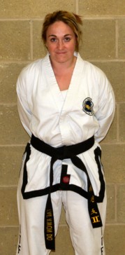 in 2002 and still trains as diligently as she always has. As a white belt, her first ever competition was a World Championships in 2000 and since then she has had a good competition career and is a fearsome fighter. Her most notable tournament success was at the 2004 World Championships where she achieved a gold in sparring, a silver in patterns and a further gold as part of the Rayners Lane female team in the team sparring division. At Rayners Lane all students are equal and thus the girls mix it up with the boys which has transcended further for Lyndsey over the years with a memorable moment being when she was a yellow belt and there were no other ladies entered in her sparring division. The event organiser gave her the choice of a straight gold or fighting in the mens division. She chose the latter and despite some tough opponents took the bronze! This happened again recently as a black belt! Lyndsey’s skills, guts and steadfast determination make her not only an excellent black belt, but a great instructor as well. |